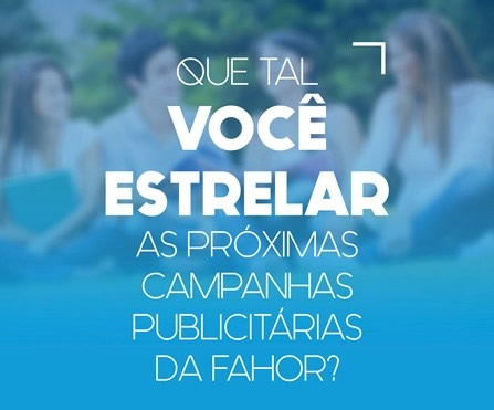 A Faculdade Horizontina lançou nesta semana a campanha "Que tal você estrelar as próximas campanhas publicitárias da FAHOR?". O intuito da equipe de Comunicação e Marketing é incentivar os acadêmicos e egressos a representarem a faculdade nas campanhas da instituição, valorizando estudantes e profissionais que escolherem a FAHOR para sua formação.