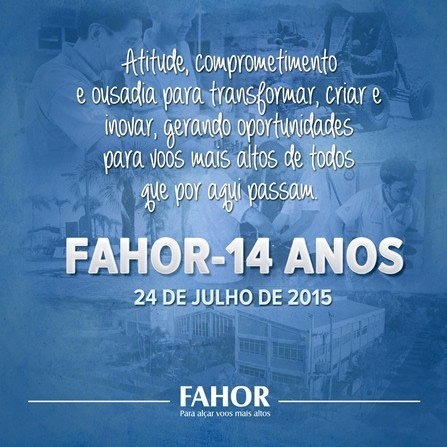 Nesta sexta-feira, dia 24, a FAHOR completa 14 anos e comemora com muito trabalho e diversos projetos para uma nova fase da faculdade, de grande desenvolvimento e crescimento.