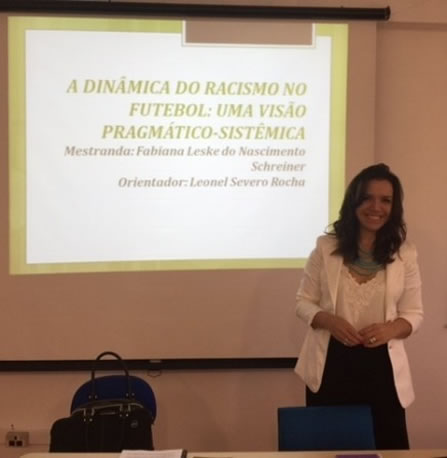 A professora Fabiana Leske do Nascimento Schreiner defendeu sua dissertação no Mestrado em Direito, pela Universidade Regional Integrada, de Santo Ângelo. O trabalho apresentado dia 4 de setembro intitulado "A Dinâmica do racismo no futebol: uma visão pragmático-sistêmica" recebeu avaliação conceito A.